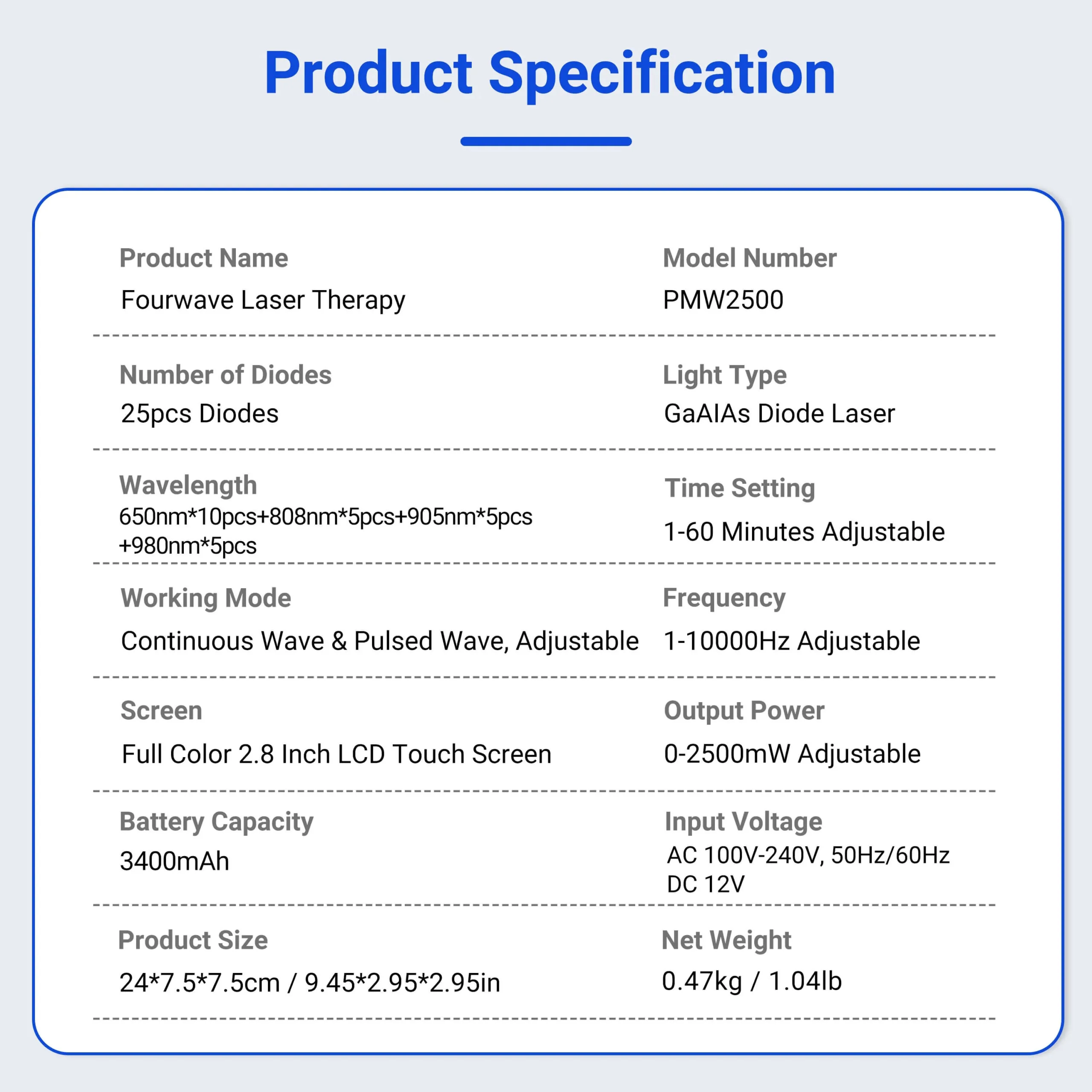 See professionaalne külmlaserseade ühendab endas neli erinevat lainepikkust (650 nm, 808 nm, 905 nm ja 980 nm), et pakkuda sügavamat kudede taastumist ja tõhusat valu leevendust. Seade on mõeldud nii inimestele kui ka lemmikloomadele, muutes selle mitmekülgseks ja praktiliseks lahenduseks nii koduseks kasutamiseks kui ka professionaalseks teraapiaks.
