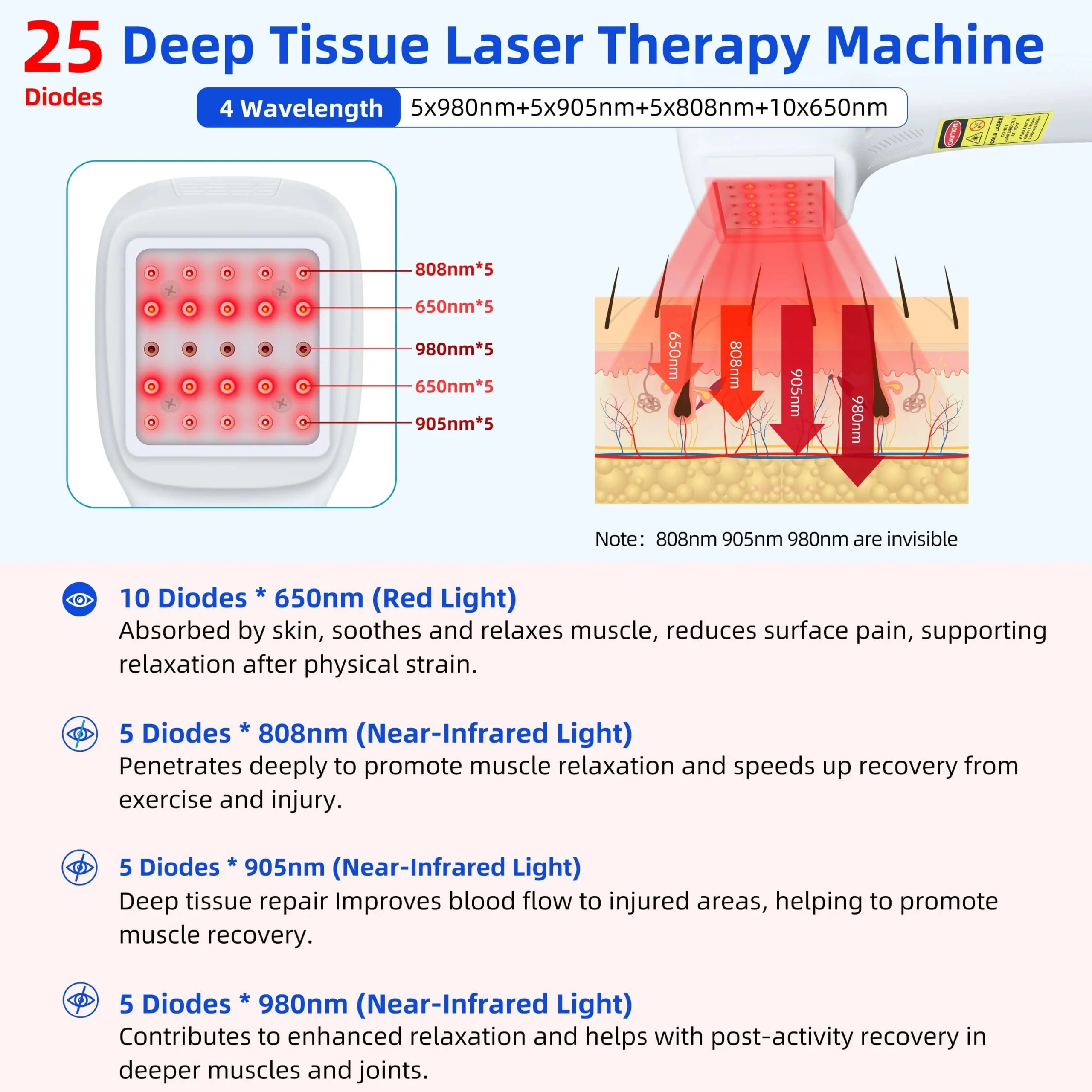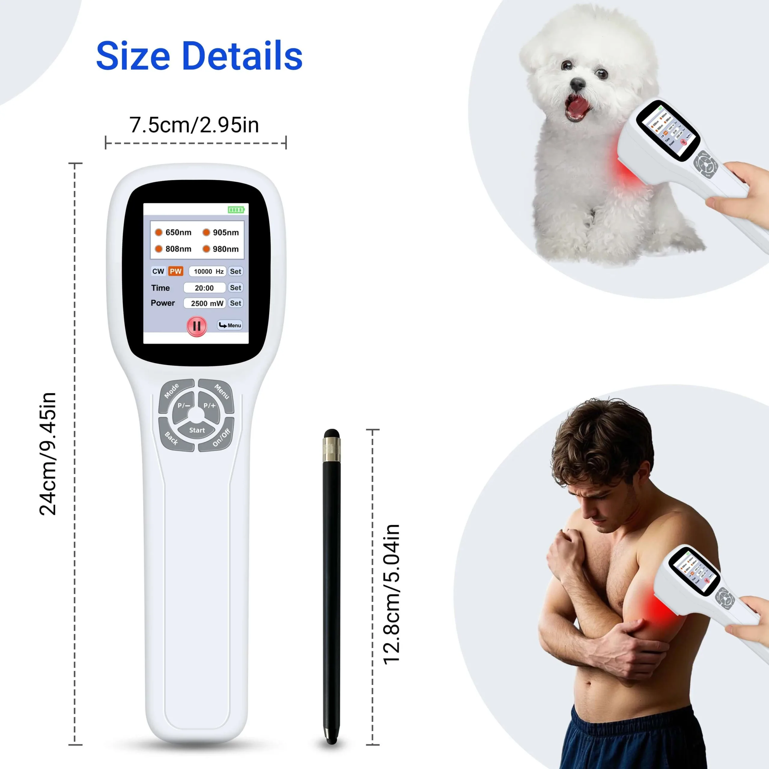 See professionaalne külmlaserseade ühendab endas neli erinevat lainepikkust (650 nm, 808 nm, 905 nm ja 980 nm), et pakkuda sügavamat kudede taastumist ja tõhusat valu leevendust. Seade on mõeldud nii inimestele kui ka lemmikloomadele, muutes selle mitmekülgseks ja praktiliseks lahenduseks nii koduseks kasutamiseks kui ka professionaalseks teraapiaks.