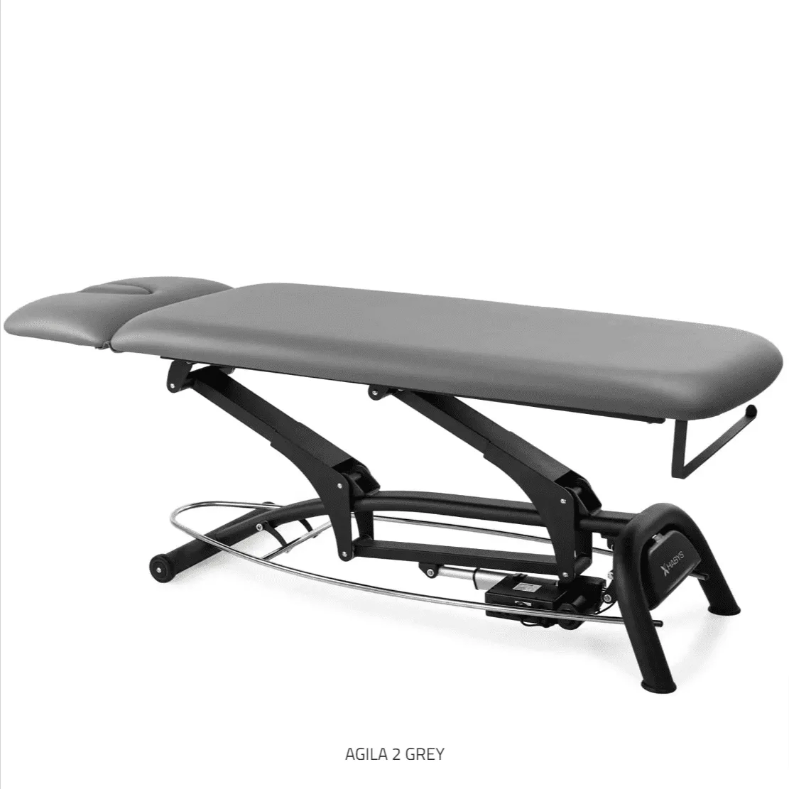 Elektriline massaažilaud Agila 2 on 2-segmendiline massaažilaud, millel on kõndimisvaba jalajuhtimine ja disain, mis tagab patsiendile mugava ligipääsu, säilitades samal ajal optimaalse stabiilsuse. Massaažilaud sobib kastuamiseks nii massaažiks, füsioteraapiaks kui ka taastusraviks.