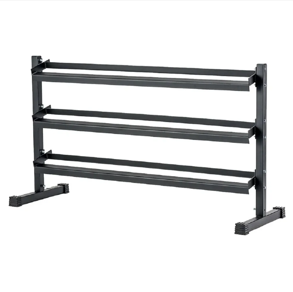 Tugev ja vastupidav raam mahutab kuni 10 paari hantleid. Kolmetasandiline disain võimaldab säästa ruumi ja pakkuda lahendust hantlite korralikuks hoidmiseks. Nii tagate, et teie varustus on alati ühes kohas, kui seda ei kasutata, ja hõlbustate kasutajatel raskuse valimist, kuna neid saab vastavalt paigutada.