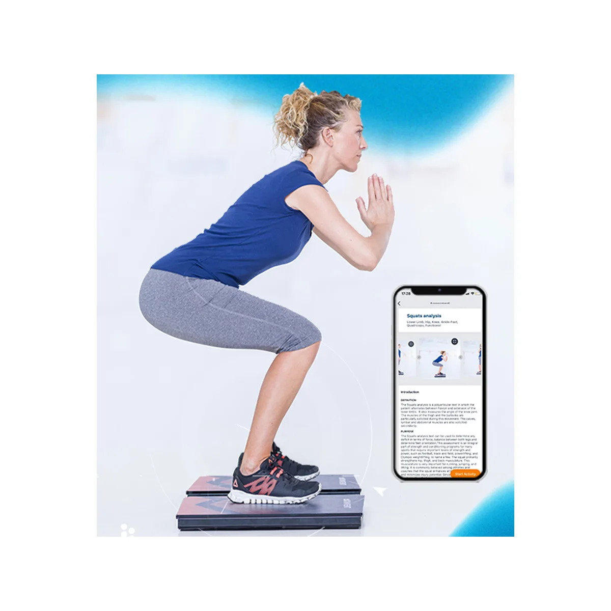 - Vastuliikumise hüppe ja kükihüppe protokollid (CMJ ja SJ): Hinnatakse hüppe kõrgust ning saadakse näitajad tõukejõu, jõu, plahvatusliku jõu, RFD (jõu arengu kiirus) ja vasaku/parema jaotuse kohta.