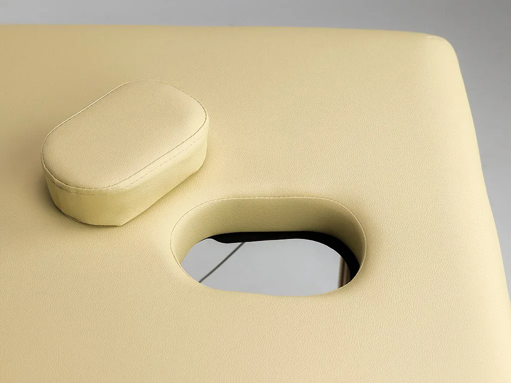 Laua konstruktsioonis on spetsiaalse kujuga väljalõige, mis hõlbustab juurdepääsu patsiendile ja töötamist istuvas asendis. See muudab selle ideaalseks ka näomassaažiks või kosmeetiliseks raviks.