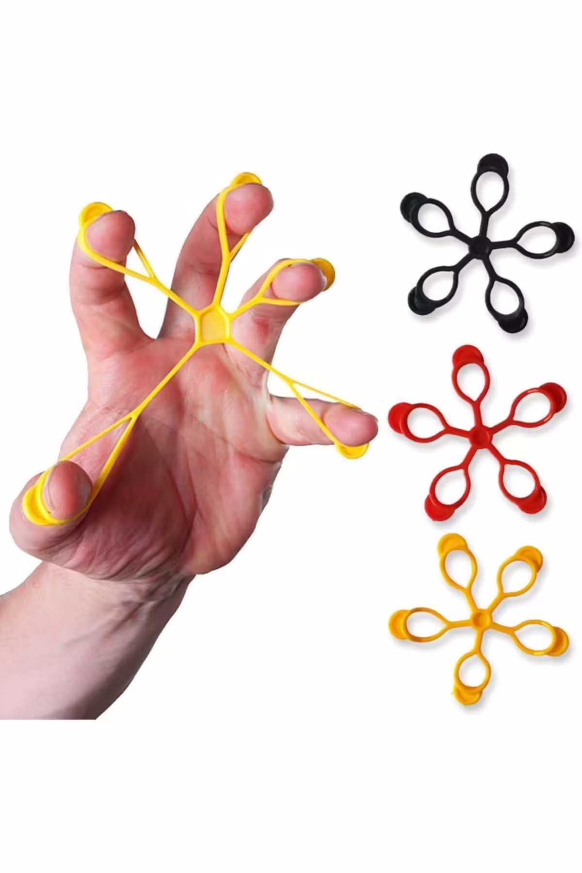 Komplektis on kolm erineva tugevusega sõrmede treeningkummi: kollane (kerge), punane (keskmine) ja must (raske). See valik võimaldab kasutajal järk-järgult suurendada treeningu intensiivsust, valides sobiva vastupanuastme vastavalt oma füüsilisele ettevalmistusele ja eesmärkidele. Kõik kummid on valmistatud 100% TPR-materjalist, mis tagab pika kasutusea ja suurepärase elastsuse. Materjal on lateksivaba ja hüpoallergeenne, mistõttu sobivad need hästi inimestele, kellel on lateksiallergia.