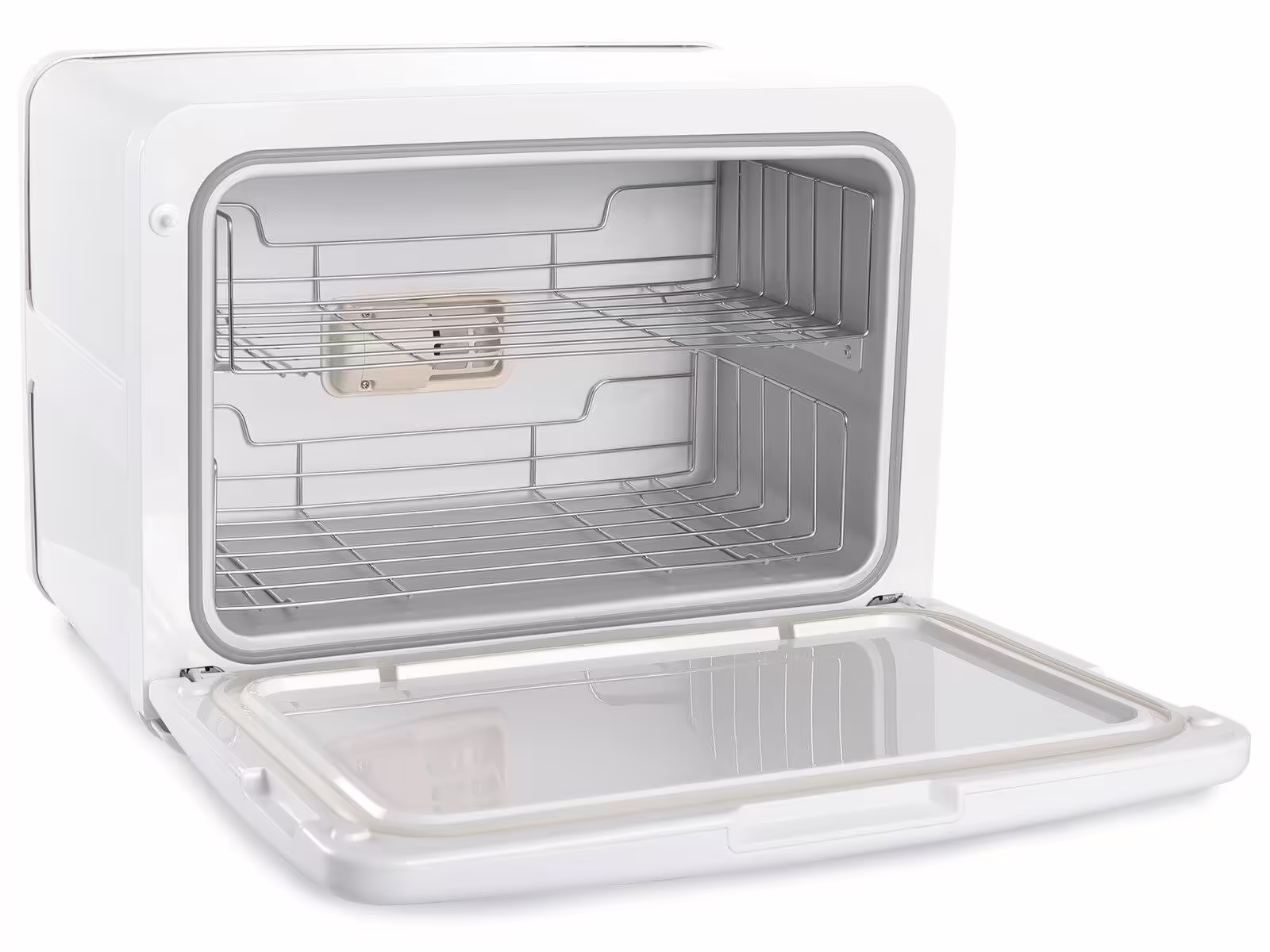 Tänu kahele rätikusahtlile ja pealt avatavale uksele, on seadme kasutamine äärmiselt mugav ja ergonoomiline. Automaatne UV-väljalülitus ukse avamisel suurendab turvalisust, samas kui integreeritud kondensvee paak hoiab seadme puhtana ja töökindlana.