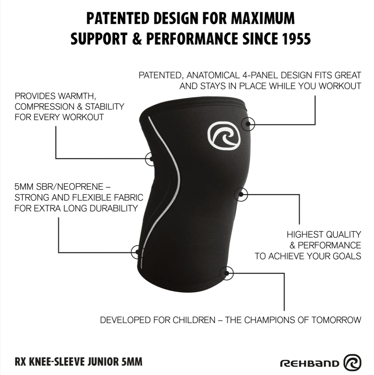Rehband RX põlvekaitse lastele on välja töötatud kasutades Rehband’i ainulaadset 4-paneelilist neopreenist konstruktsiooni, mis tagab mugava istuvuse ja täieliku toetuse põlveliigese jaoks, piiramata seejuures lihaste arengut või liikumisulatust. Selle kõrgekvaliteedilise laste põlveümbrise tekitatud verevoolu ja soojuse suurenemine hoiab põlve turvaliselt, olenemata sellest, millise tegevuse teie laps on valinud, samas kui kompressioon suurendab lihaskontrolli ja koordinatsiooni.