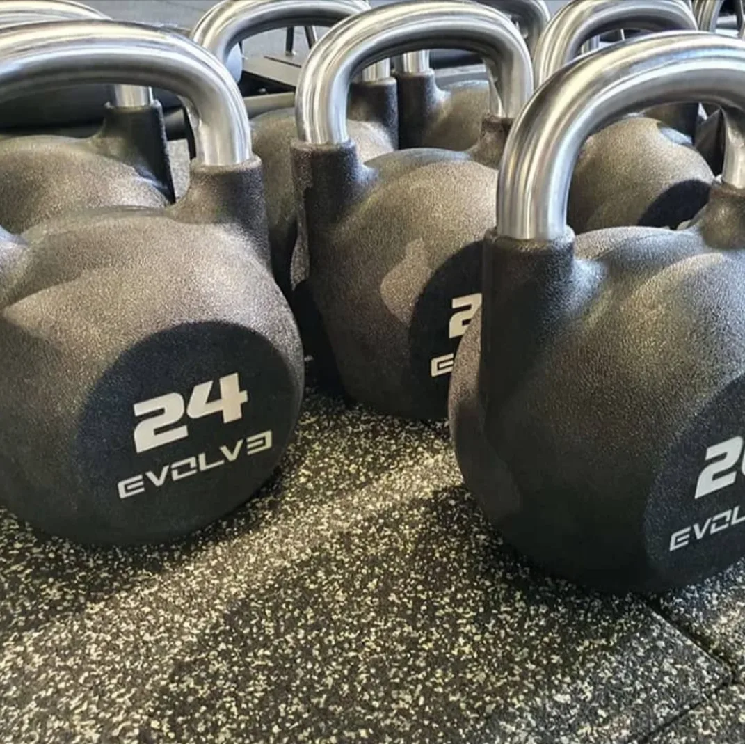 Evolve uretaanist sangpommid vastavad rahvusvahelistele konkurentsistandarditele. Kõik need on sama suuruse ja läbimõõduga, olenemata kaalust. See funktsioon aitab kergemini üle minna rasketele raskustele, säilitades samal ajal ühtse treeningtehnika. Vastupidav kroomitud käepide annab läikiva ja stiilse viimistluse ning on korduval liigutamisel palju mugavam kui puhtast metallist tekstuuriga käepidemed. Suur tasane alus tagab stabiilsuse ja täiusliku tasakaalu.