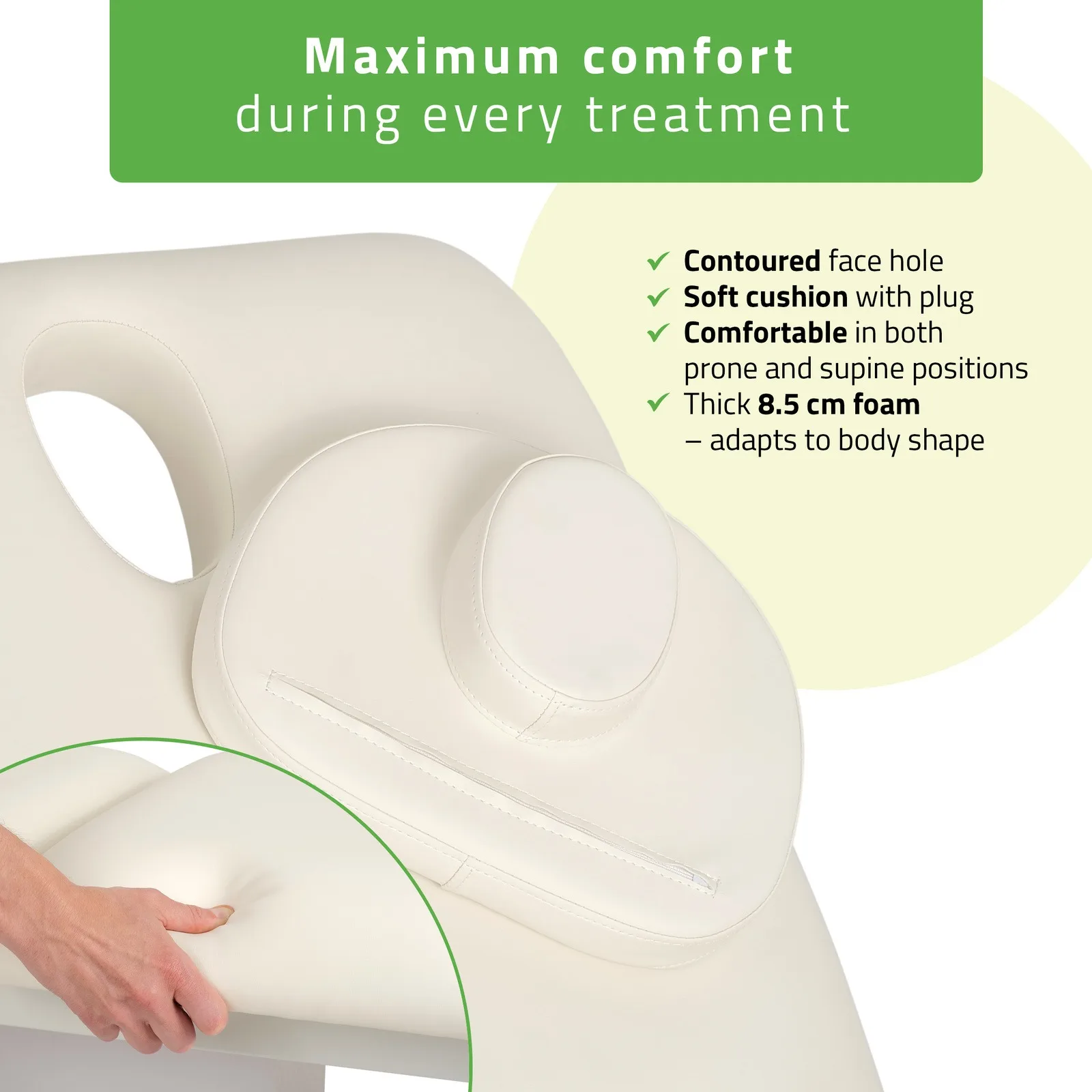 Paindlik ja mugav, kohandub kehaga, tagades kõrgetasemelise mugavuse ka pikemate protseduuride ajal. -
