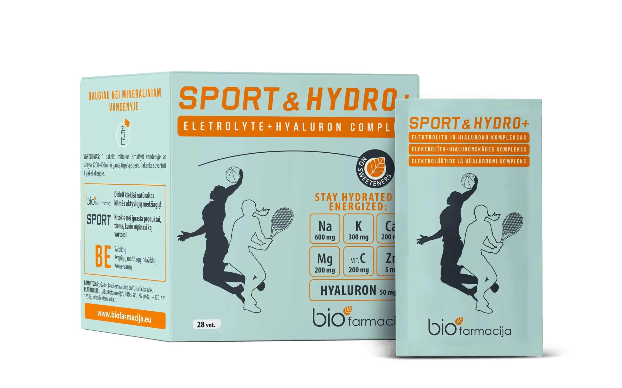 Sport&Hydro+ on kõrgekvaliteediline elektrolüütide ja mineraalide kompleks, mis toetab organismi niiskustasakaalu ja energiavahetust. See aitab vähendada väsimust, toetab lihaste ja närvisüsteemi normaalset talitlust. Sport&Hydro+ sisaldab magneesiumi, kaaliumi, kaltsiumi, tsinki ja C-vitamiini. Toode sobib aktiivsetele inimestele ja sportlastele.