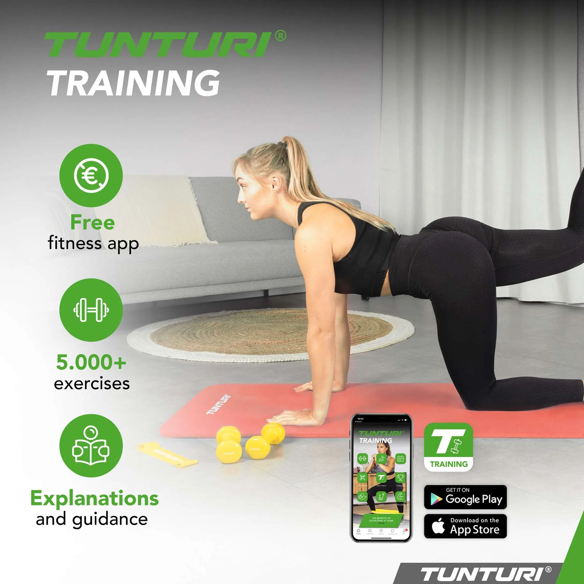 Parim osa? Tunturi Training on 100% tasuta ja saadaval nii App Store’is kui Google Play’s!