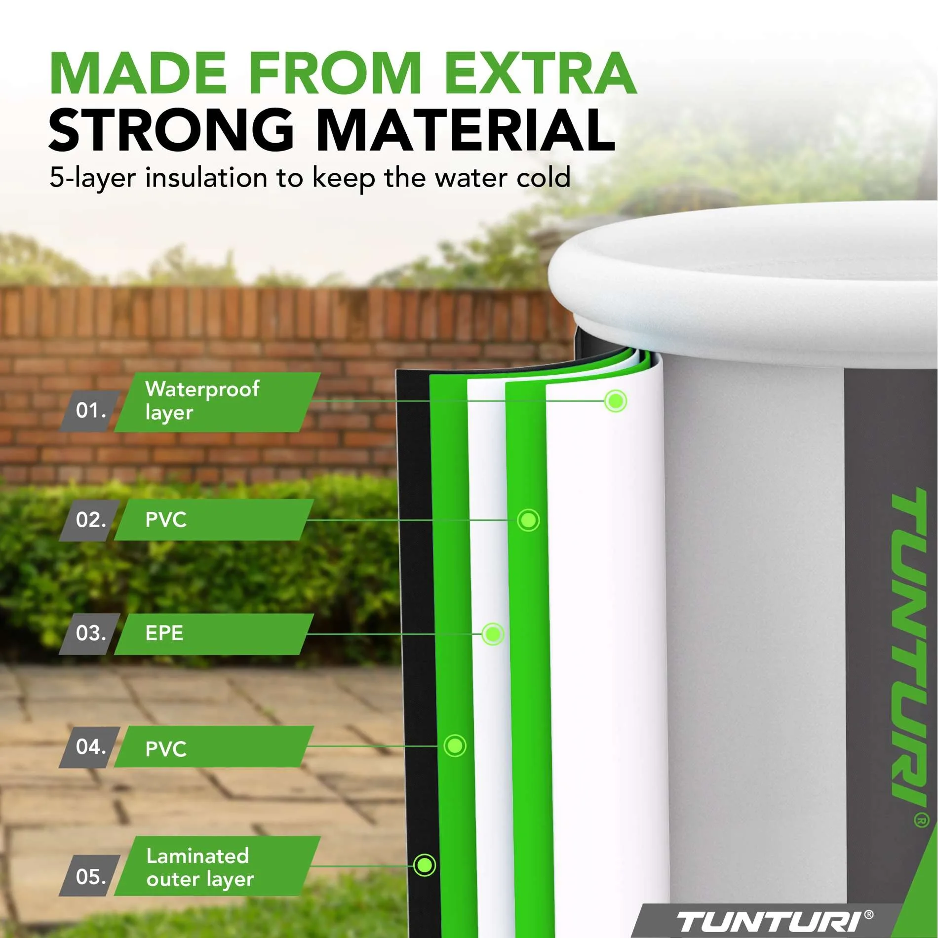 IB30 on valmistatud vastupidavatest ja ilmastikukindlatest materjalidest, sobides nii välistingimustesse kui ka igasse aastaaega. Viie isolatsioonikihi (sh veekindel ja PVC-kiht) abil kestab see aastaid. Isolatsioonikiht EPE hoiab vee jahedana kauem, et saaksid igal ajal nautida külmateraapia väljakutset. See on ideaalne viis kogeda kodus külmateraapiat maksimaalse efektiivsuse ja naudinguga.