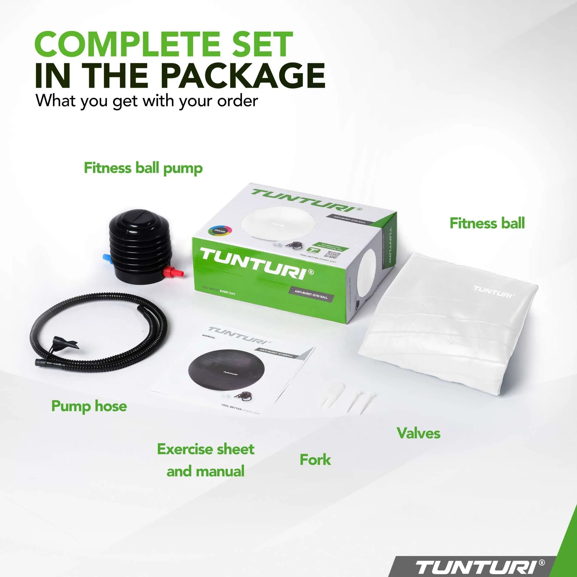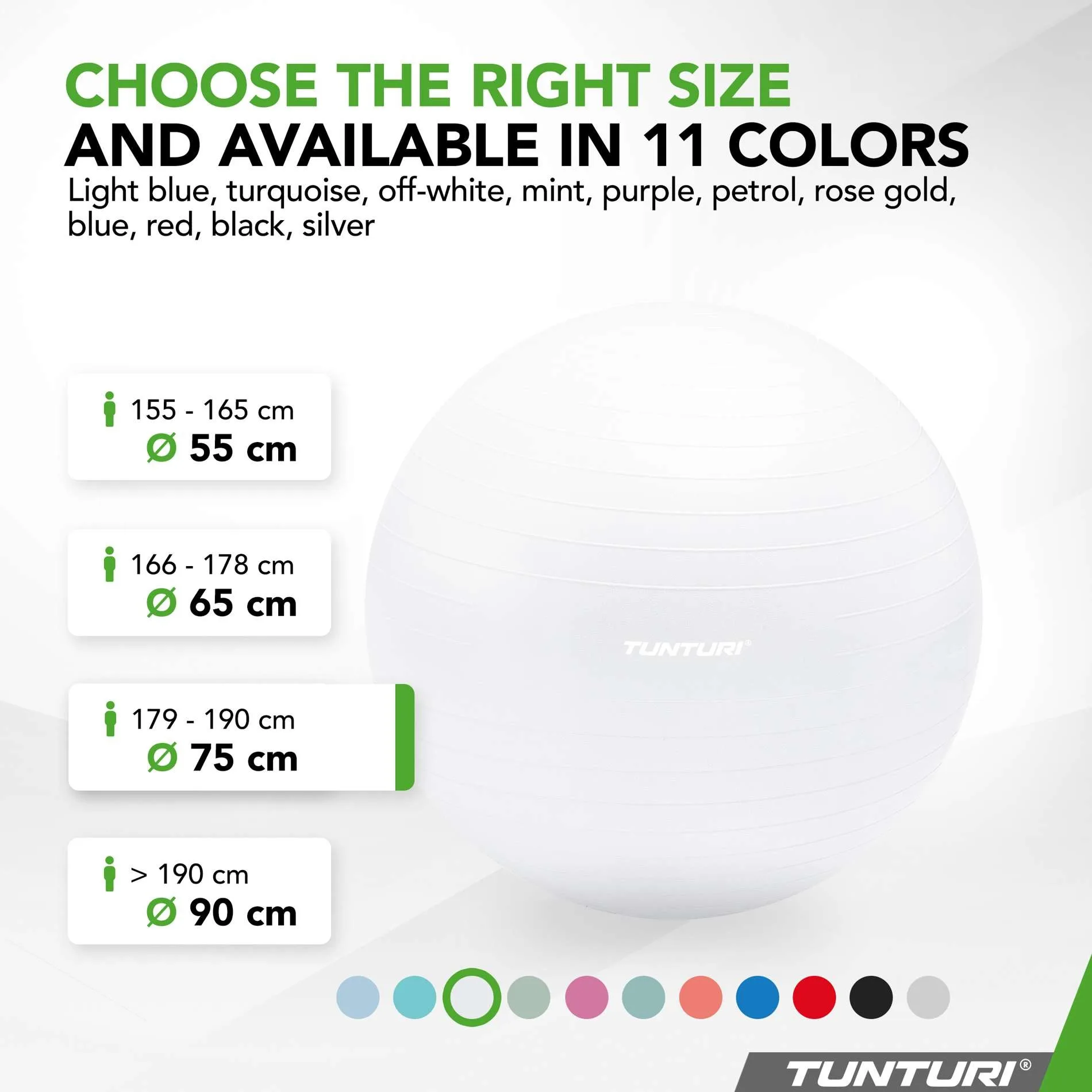 Võimlemispall 75cm, valge, pumbaga-Tunturi