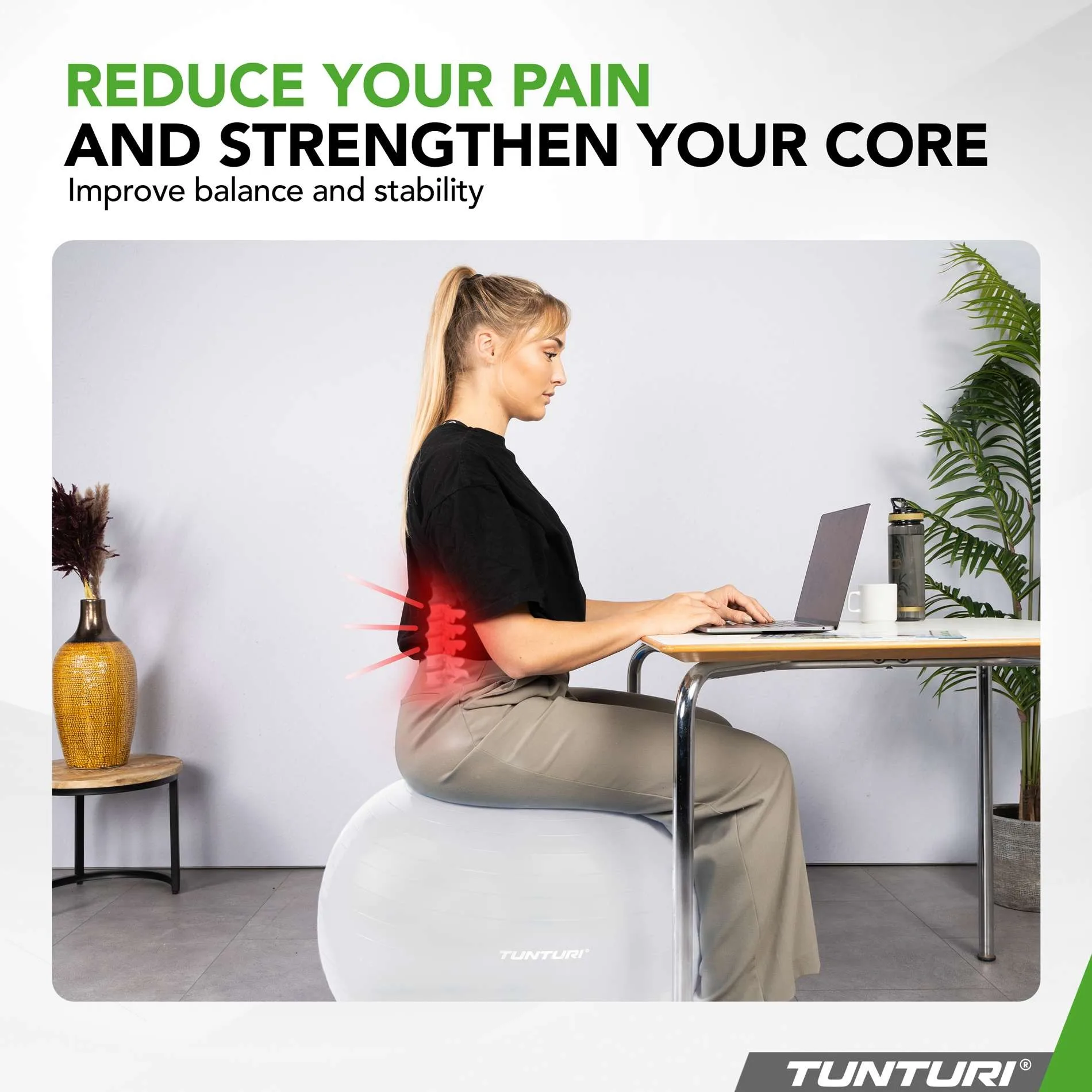Paranda oma treeningut, optimeeri istumisasendit ja avasta Tunturi treeningpalli mitmekülgne kasutusmugavus. Ühenda vastupidavus, stiil ja funktsionaalsus ühes kvaliteetses tootes.