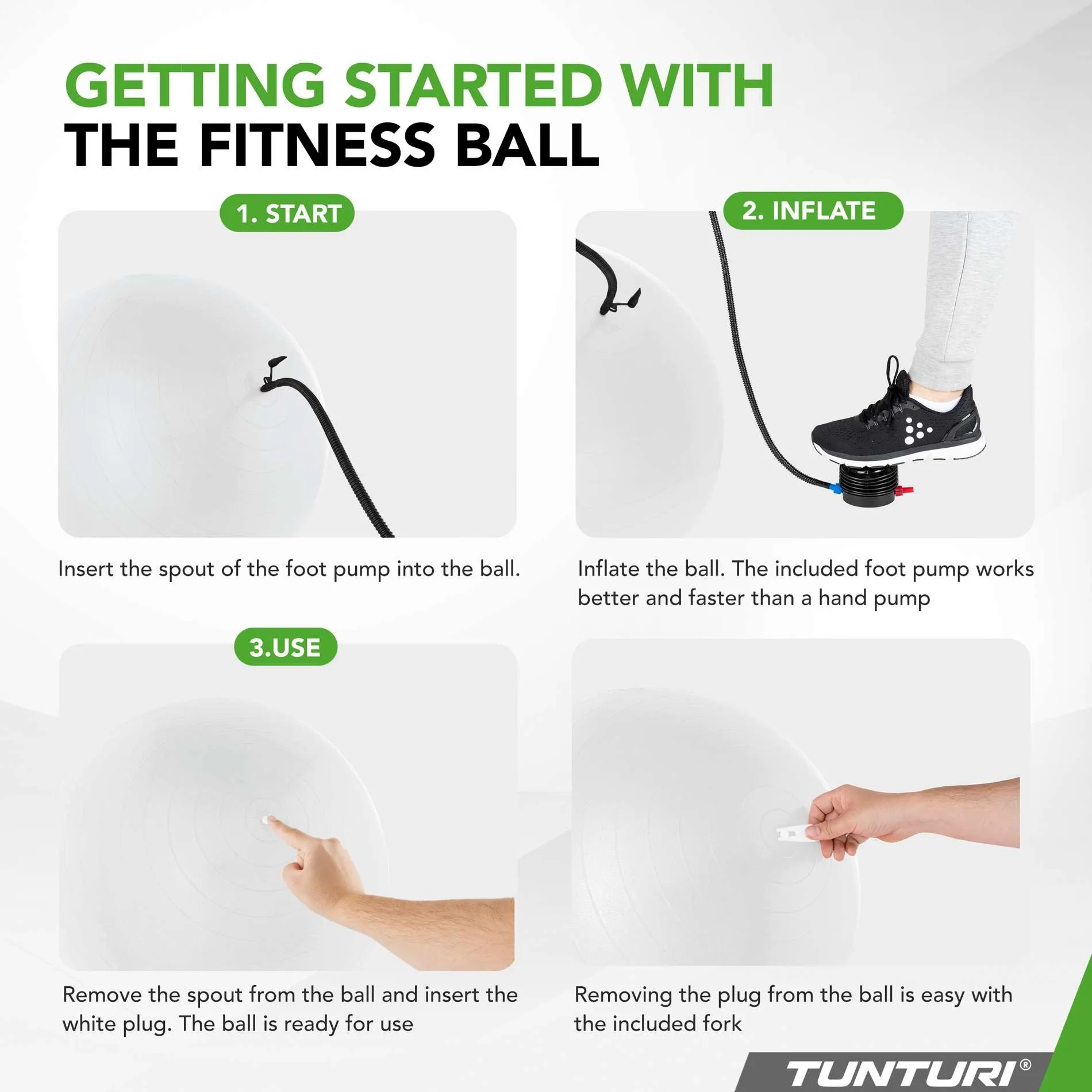 Sisesta kork tagasi – pall on valmis kasutamiseks.